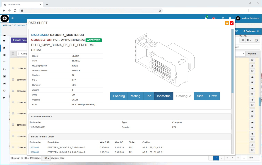 Arcadia v19 bringt auch die neueste App für das Teileauswahl- und Bestellsystem mit sich. Cadonix hat schon immer verstanden, wie wichtig es ist, dass Ingenieurteams sofort loslegen können. Kunden können aus einer ständig wachsenden Bibliothek von 20.000 kuratierten Teilen wählen. Diese enthalten alle Metadaten und Ansichten, die sie benötigen, um ihre Teile zu entwerfen und sicherzustellen, dass sie nach ihren Spezifikationen gefertigt werden – und das alles über die integrierte Einkaufsanwendung.