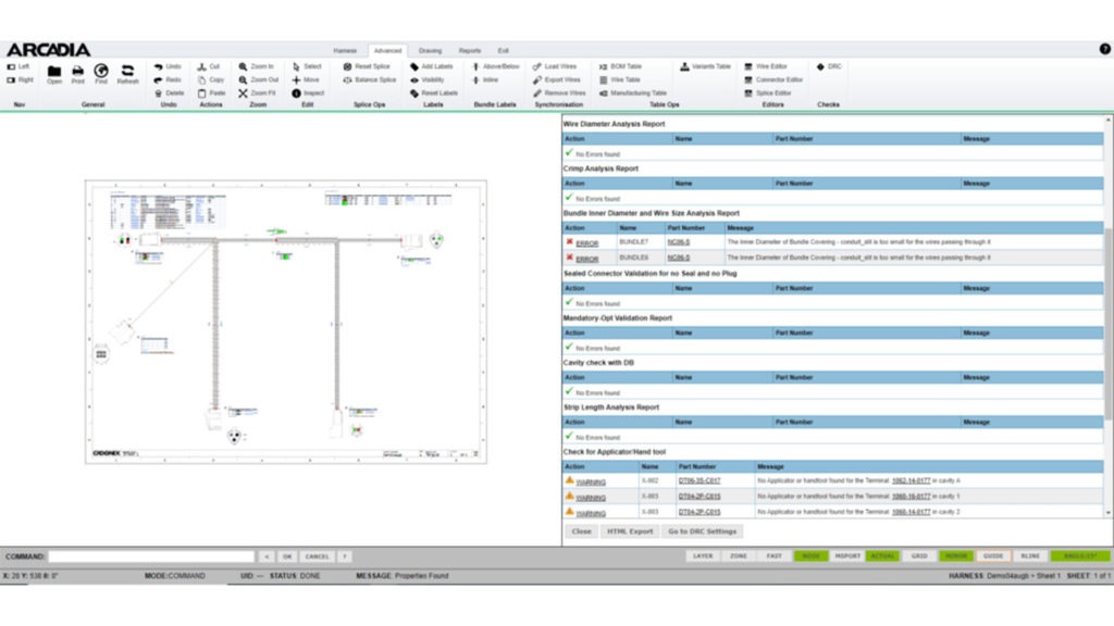 Consejo: Aprovecha las comprobaciones de las reglas de diseño y las funciones de cálculo automático de cables de Arcadia Harness. Esto garantiza mediciones precisas y verifica que el diseño de tu arnés está pensado para la fabricación.