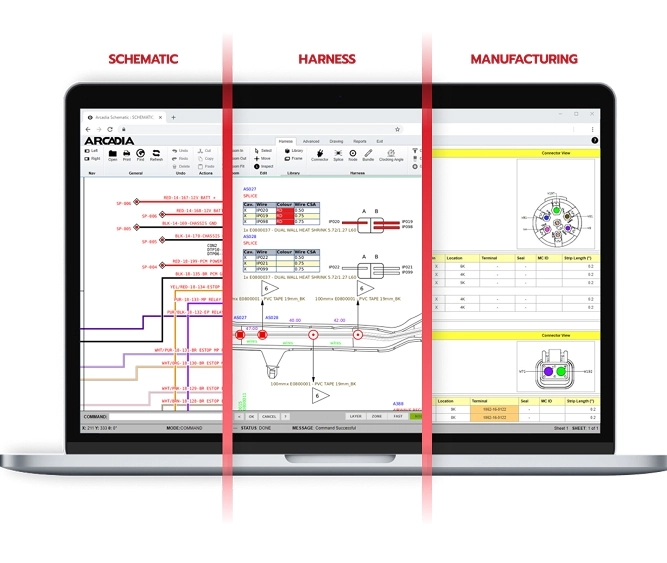 This bundle includes all three products in the Arcadia Suite. Unlock the full power of Arcadia with an all-in-one solution for schematics, harness design, formboards, reports, and advanced expansions. Speed up production, eliminate errors, and ensure seamless collaboration from concept to manufacturing.