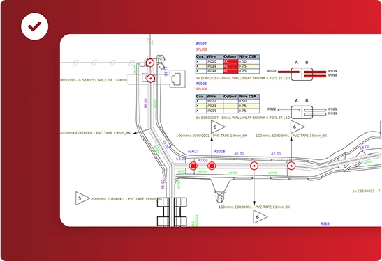 Ensure every design meets IPC-620 standards with automated validation. From correct component sizing to insulation and bundle coverings, Arcadia flags potential issues before they impact production.